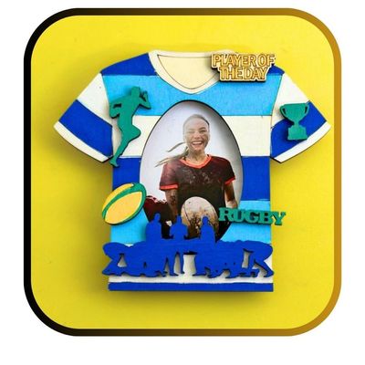 Kids will love building their very own wooden photo frame, complete with fun rugby-themed decorations.